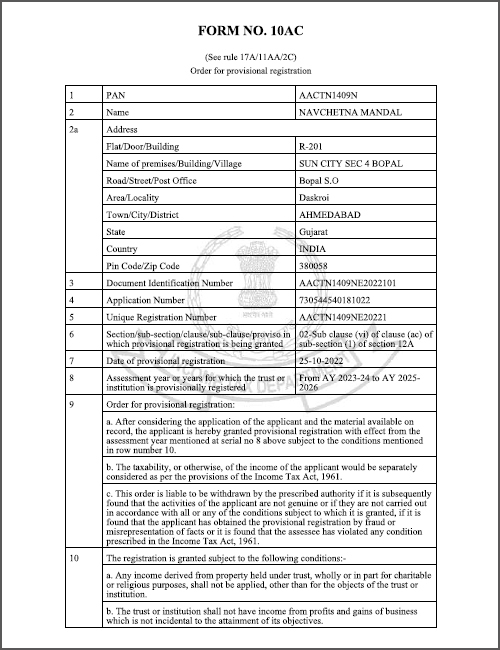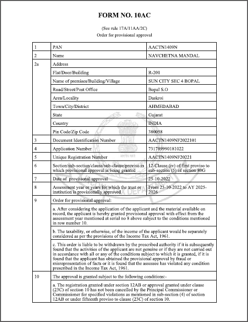 Navchetna Mandal 80G Approval